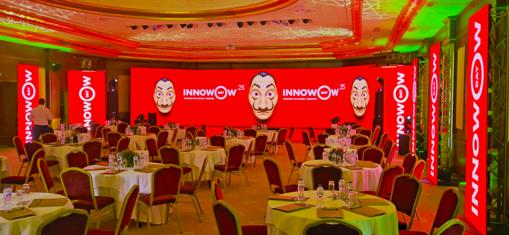 To elevate the event atmosphere from the very first moment, we designed two LED cube towers at the entrance combined with a fully immersive LED tunnel. This installation created a powerful visual impact, welcoming guests into a space that blended innovation, brand identity, and engagement.